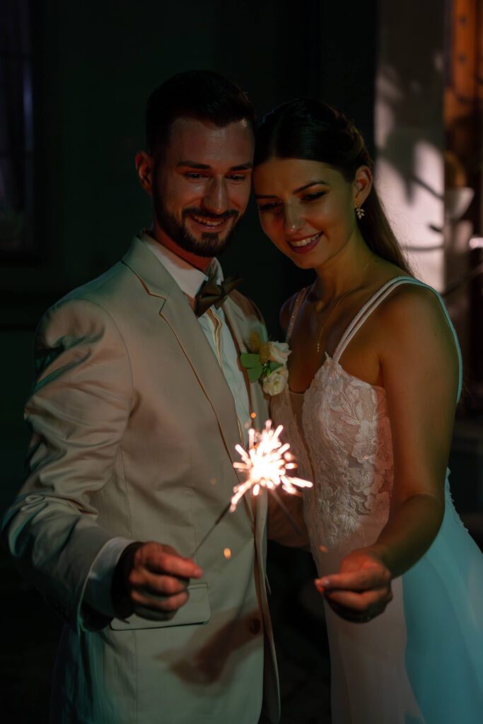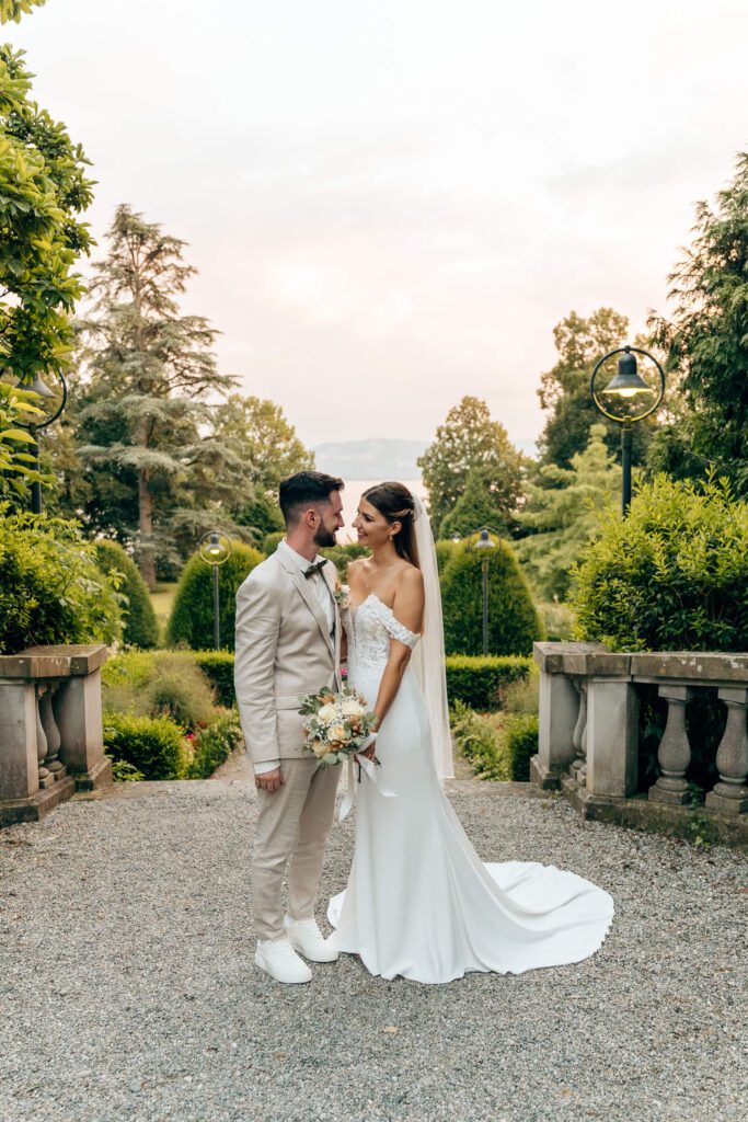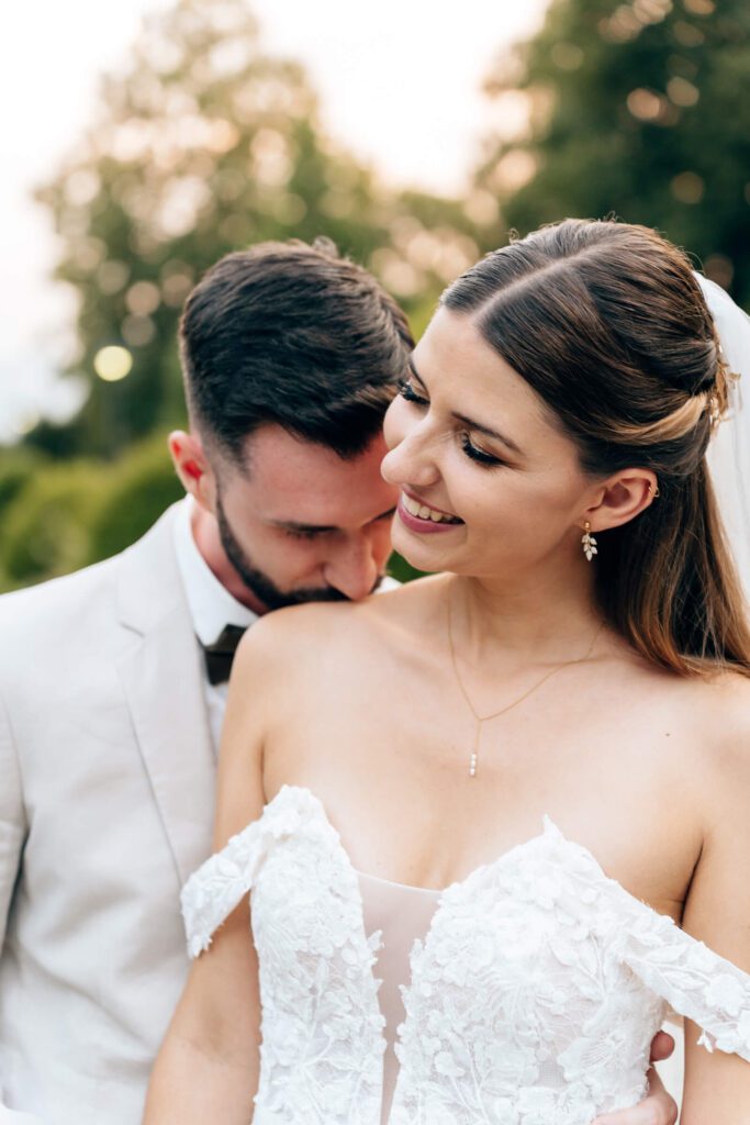 Gefeiert wurde anschließend im Leopold am See – einer beeindruckenden Villa direkt am Bodensee, umgeben von einem traumhaften Park. In den kühlen Abendstunden nahmen wir uns noch ausgiebig Zeit für ein Brautpaarshooting. Der Park bot so viele schöne Ecken, und die Stimmung war einfach magisch. Später am Abend wurde getanzt, gelacht und zum Abschluss entstanden noch ein paar Bilder mit Wunderkerzen und Lichtern – ein perfekter Ausklang eines wundervollen Tages.